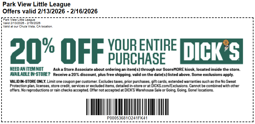 Dick's Sporting Good - Coupon (02/13/26 - 02/16/26)